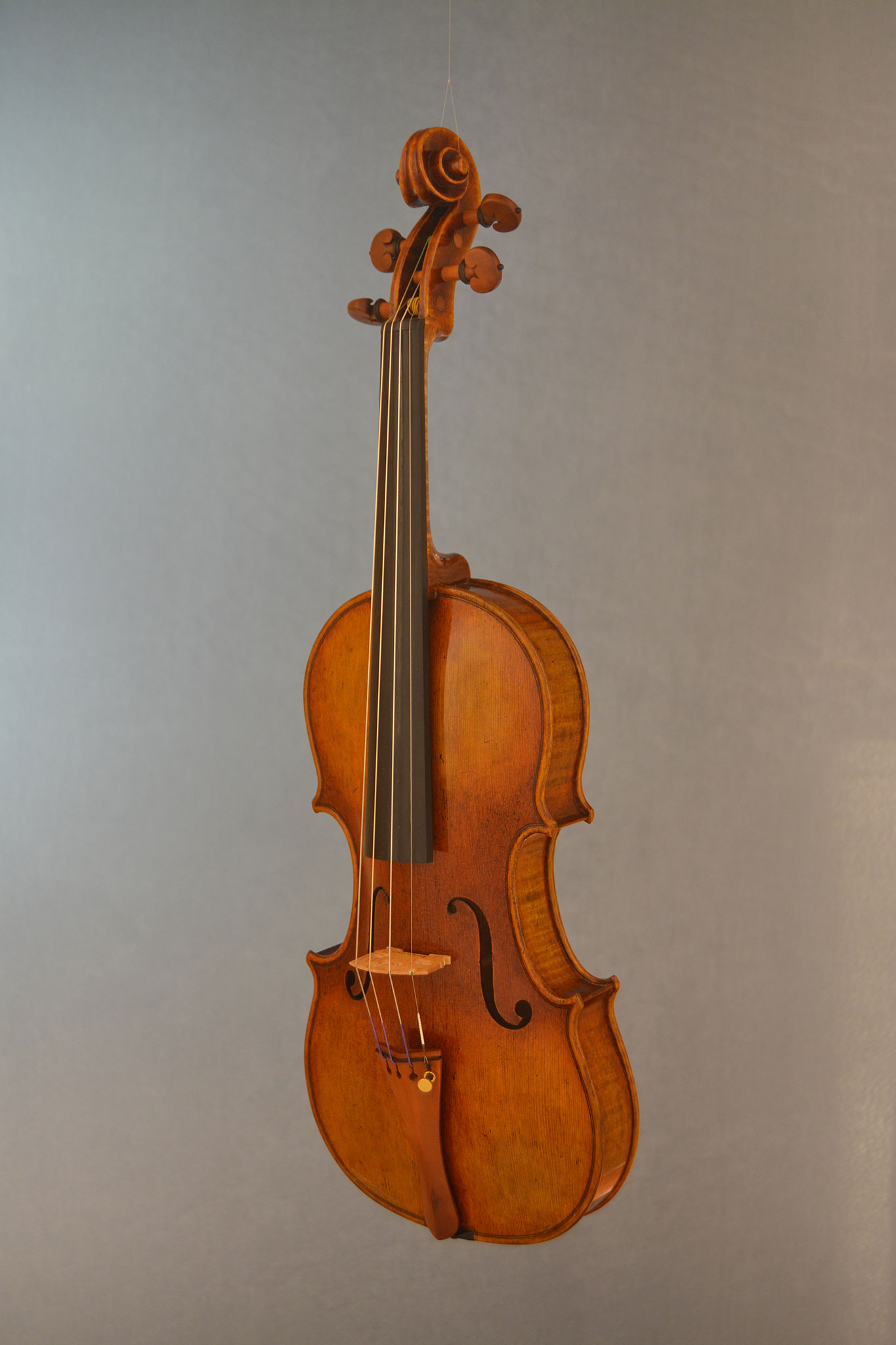 Violín fabricado siguiendo las proporciones y características del estilo de Pietro Guarneri, combinando la elegancia de la escuela cremonesa con influencias venecianas que enriquecen su proyección y color tonal. Reconocido por su sonido amplio, cálido y con gran riqueza armónica, este modelo ofrece una respuesta flexible y una gran capacidad expresiva. Su construcción artesanal emplea maderas seleccionadas y un barniz aplicado a mano que resalta su estética clásica y favorece la resonancia natural del instrumento. Ideal para intérpretes que buscan un sonido sofisticado, con profundidad y carácter distintivo.